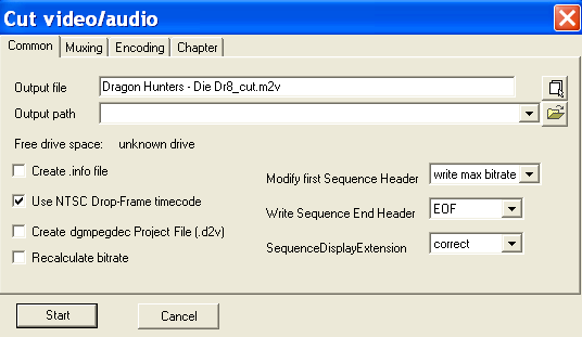Filmdatei *.m2v hinzufügen (Audio Datei *.mp2 sollte automatisch mit ergänzt werden)