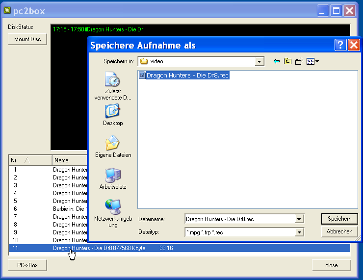 Kopieren der Aufnahme vom Receiver auf die PC Festplatte